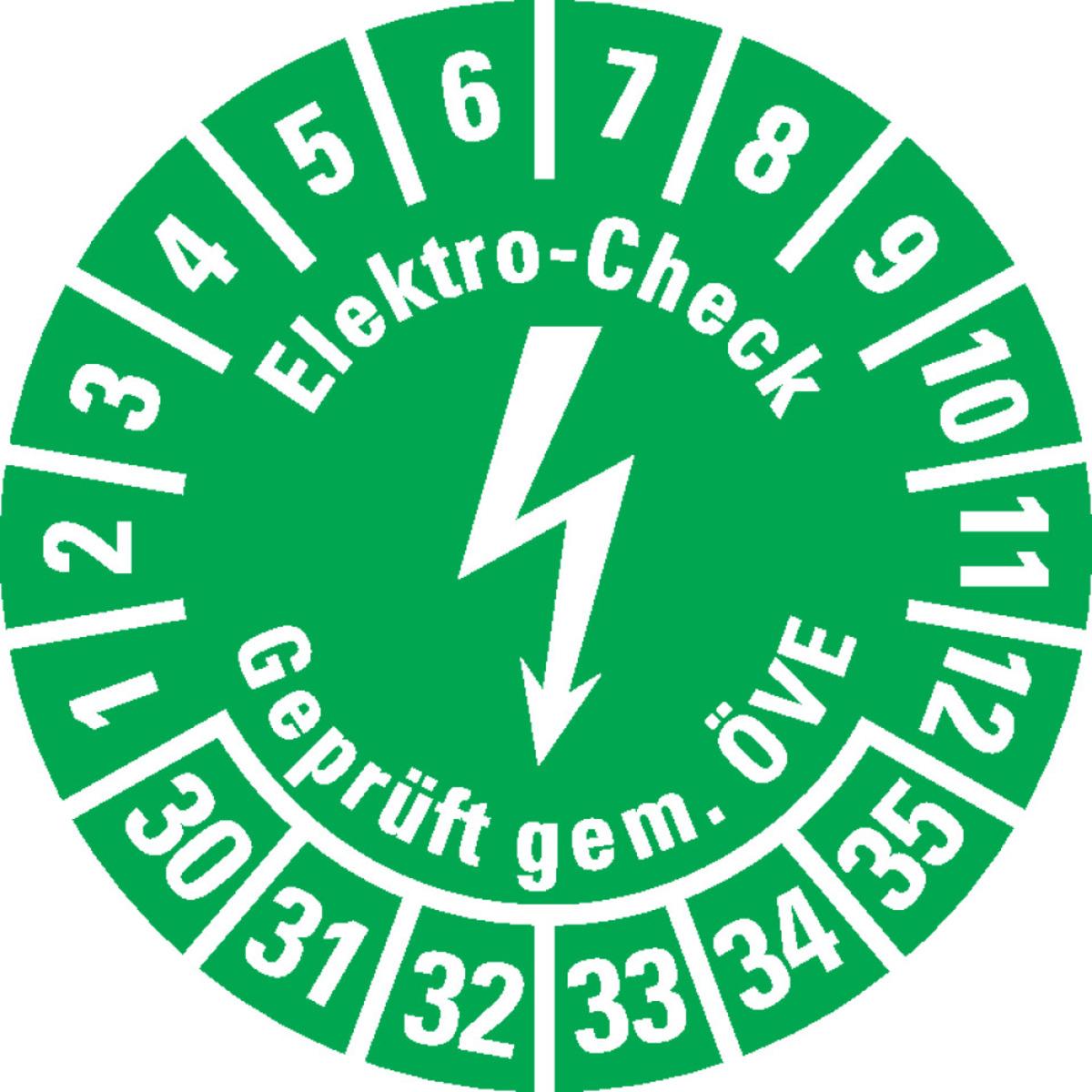 Mehrjahresprüfplakette "Elektro-Check Geprüft gemäß ÖVE" zur Prüfung von elektrischen Geräten und Anlagen