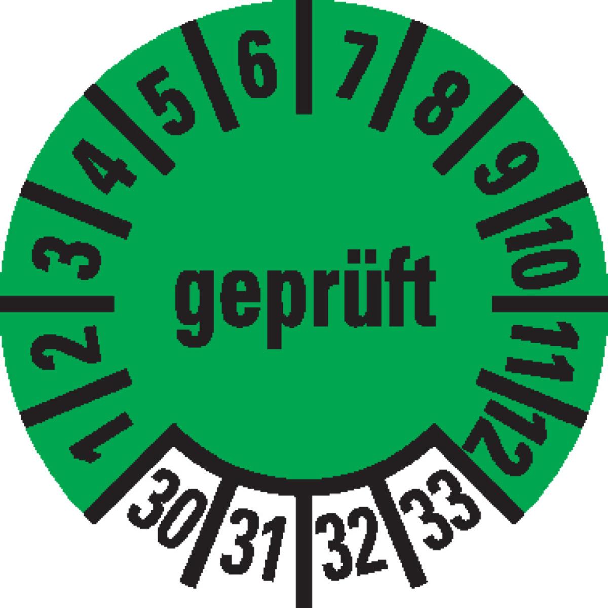 Auswahl: Prüfplakette geprüft 26-29, grün, Dokumentenfolie, Ø 10mm, 1000/Rolle