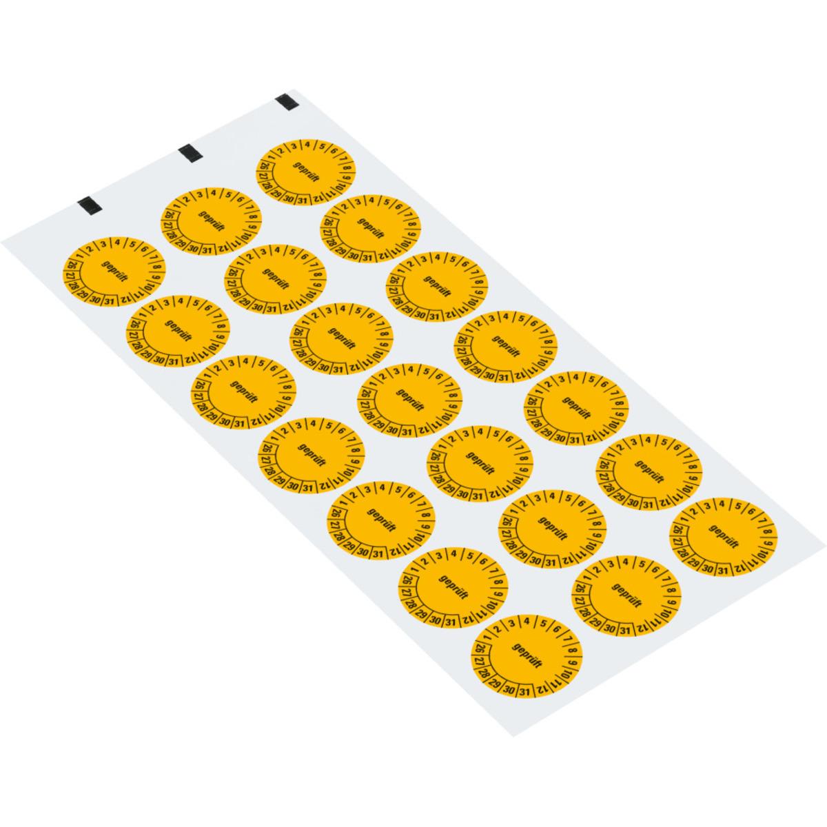Auswahl: Prüfplakette geprüft 26-31, gelb, Dokumentenfolie, selbstklebend, Ø25mm, 21/Bogen