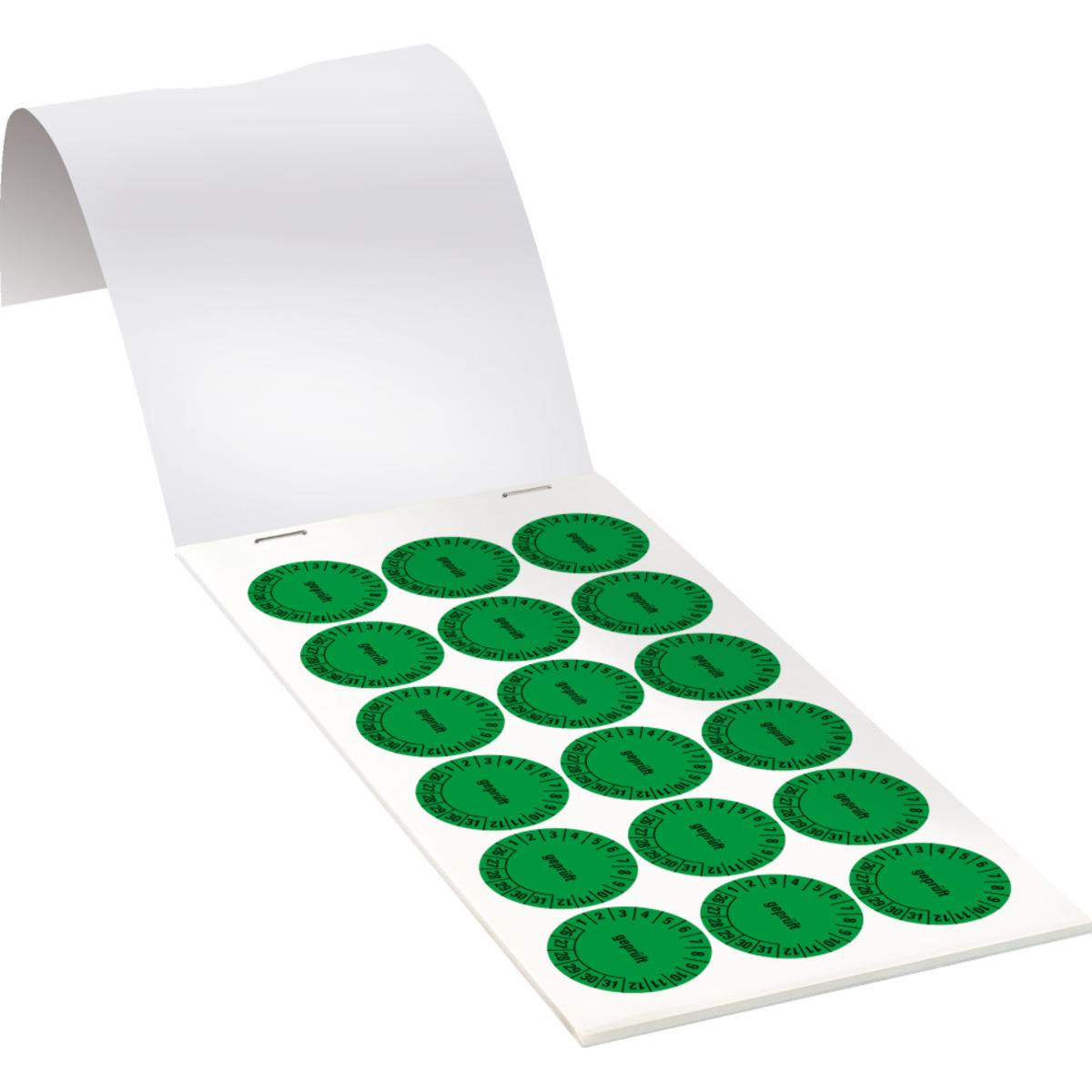 Auswahl: Prüfplakette geprüft 26-31, grün, Dokumentenfolie, selbstklebend, Ø 30mm, 108/Heft