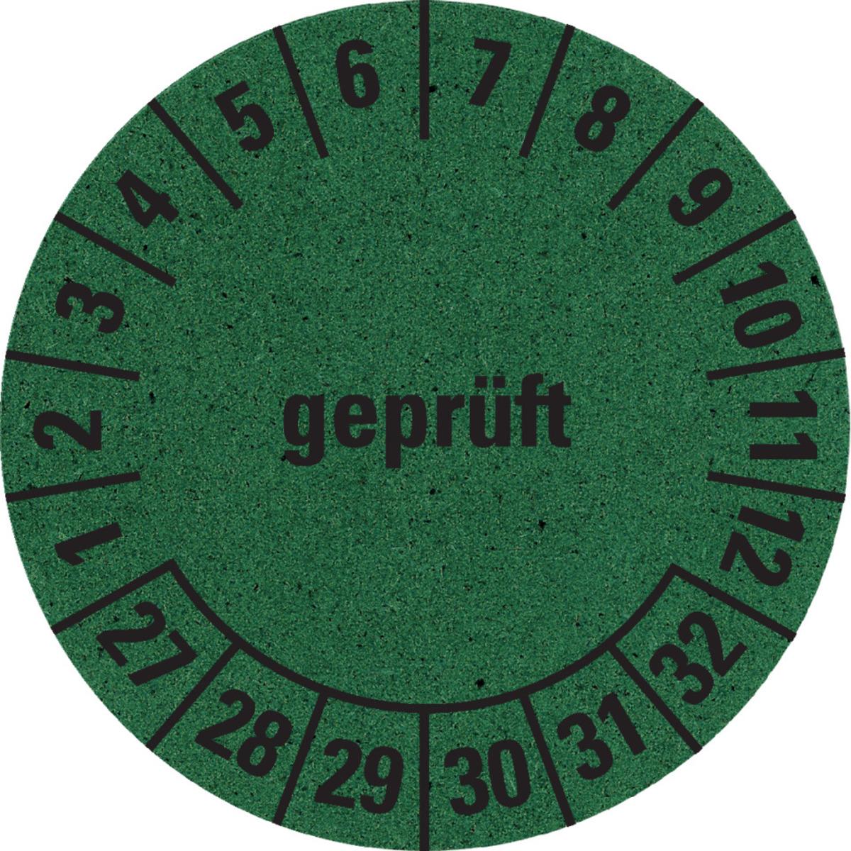 Auswahl: Prüfplakette geprüft 27-32, grün, Primärfaser-Graspapier, Ø 30mm, 18/Bogen