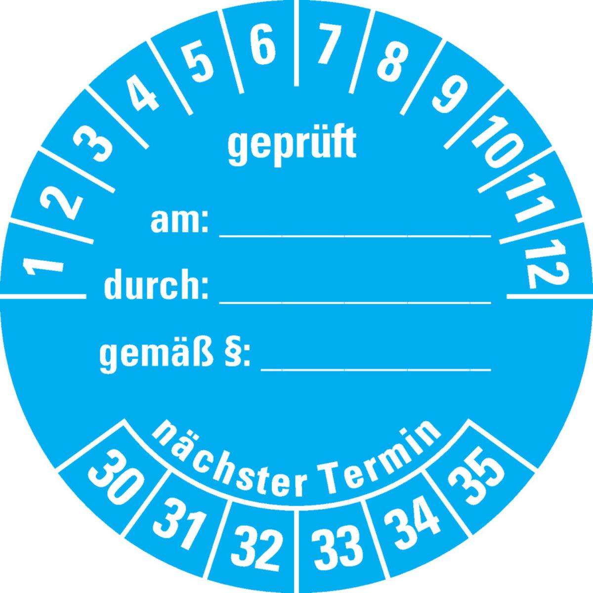 geprüft, am:, durch:, gemäß §:, nächster Prüftermin