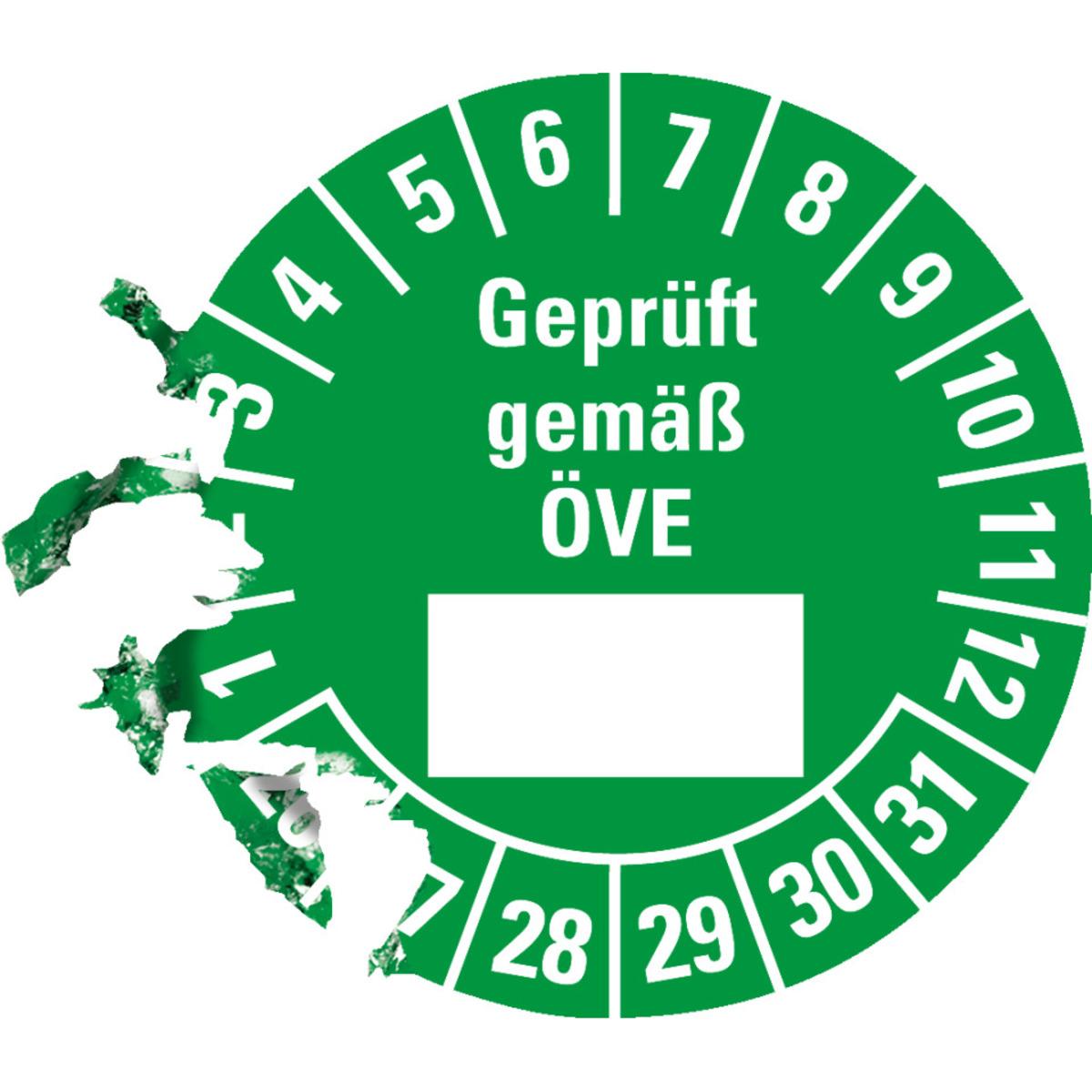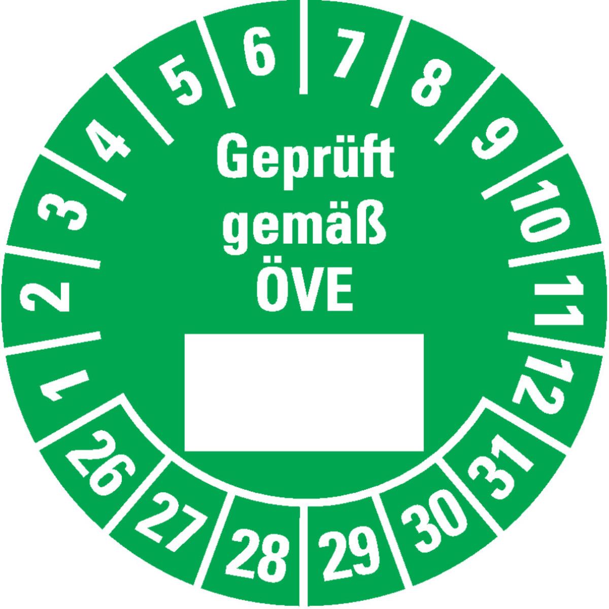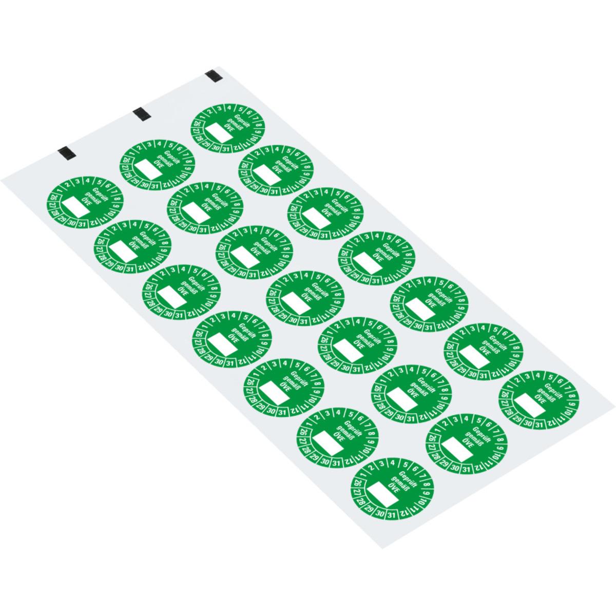 Auswahl: Prüfplakette Elektr.Gepr.gemäß ÖVE, 26-31, grün, Dokufolie, Ø25mm, 21/Bogen