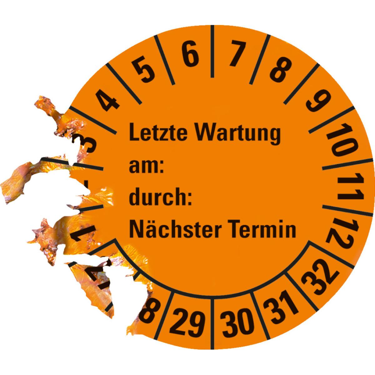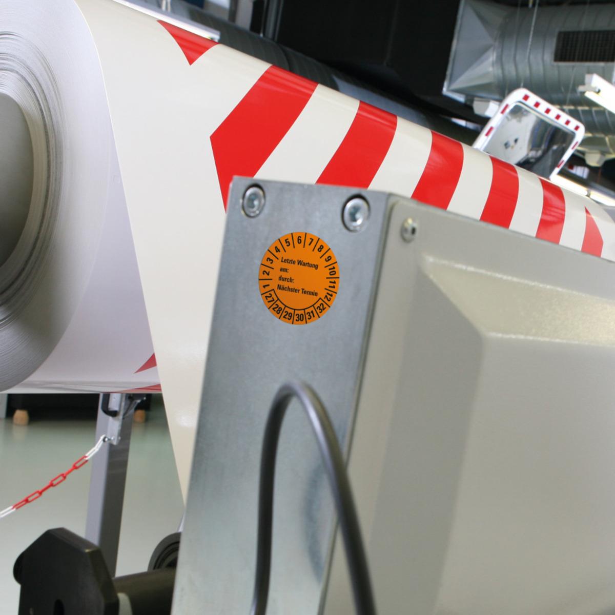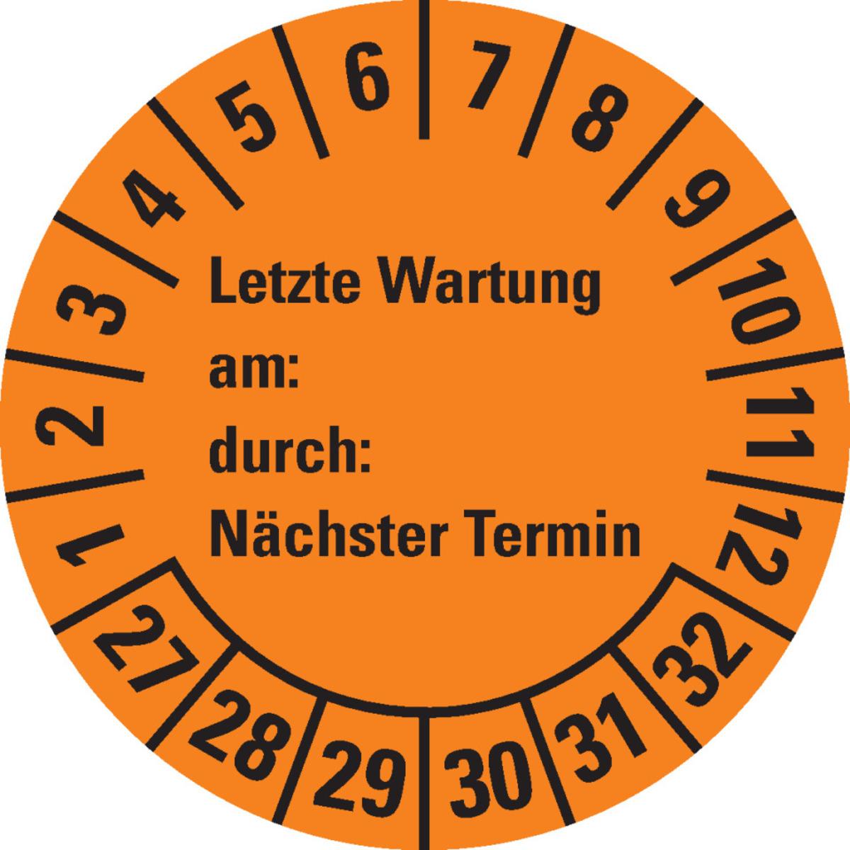 Auswahl: Prüfpl.Letzte Wart., am, durch, Nächste Prüf.27-32, orange, Dokufolie, Ø30mm, 18/BOG