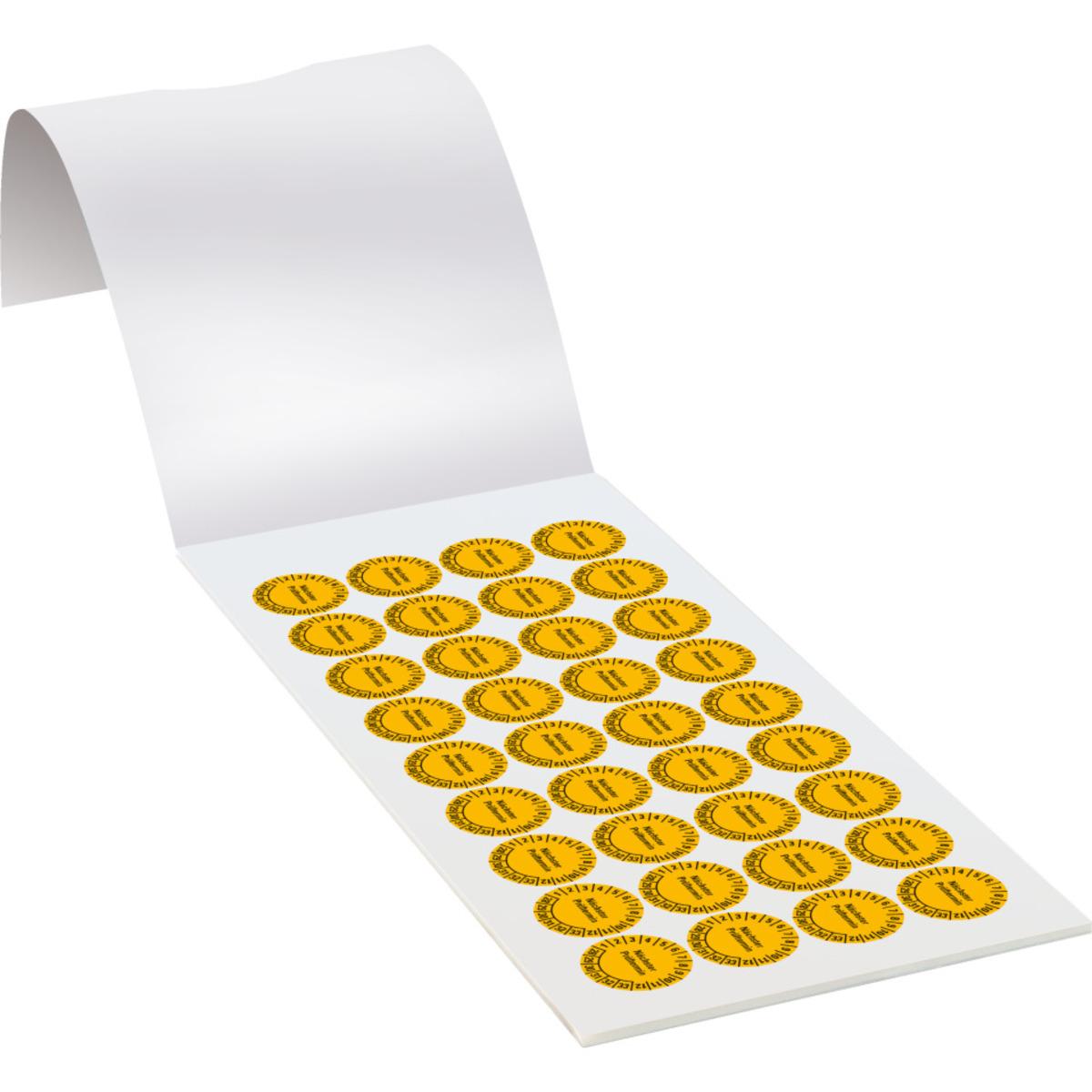 Auswahl: Prüfplakette Nächster Prüftermin 28-33, gelb, Folie, ablösbar, Ø 20mm, 180/Heft