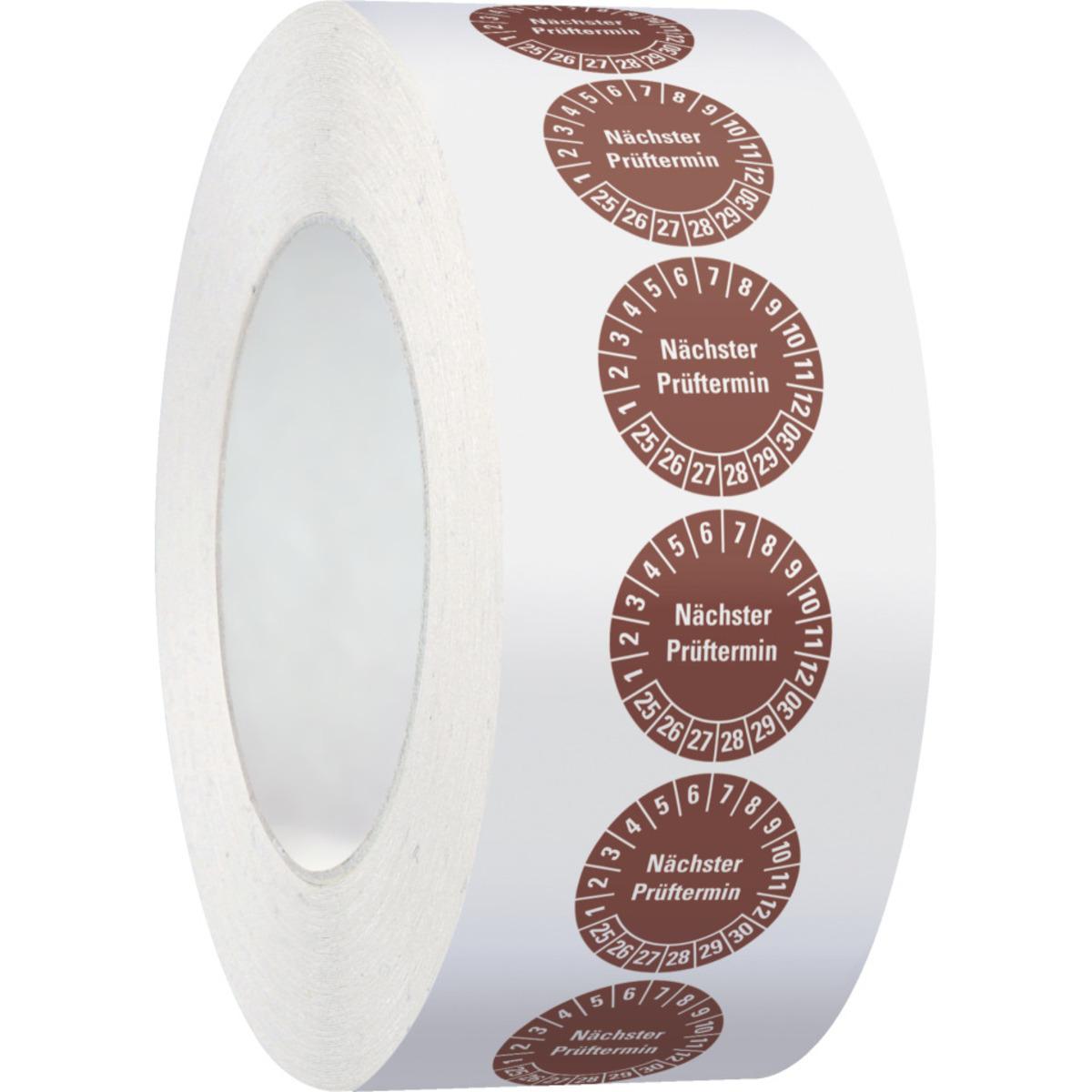 Auswahl: Prüfplakette Nächster Prüftermin, 25-30, braun, Folie, ablösbare Folie, 500/Roll