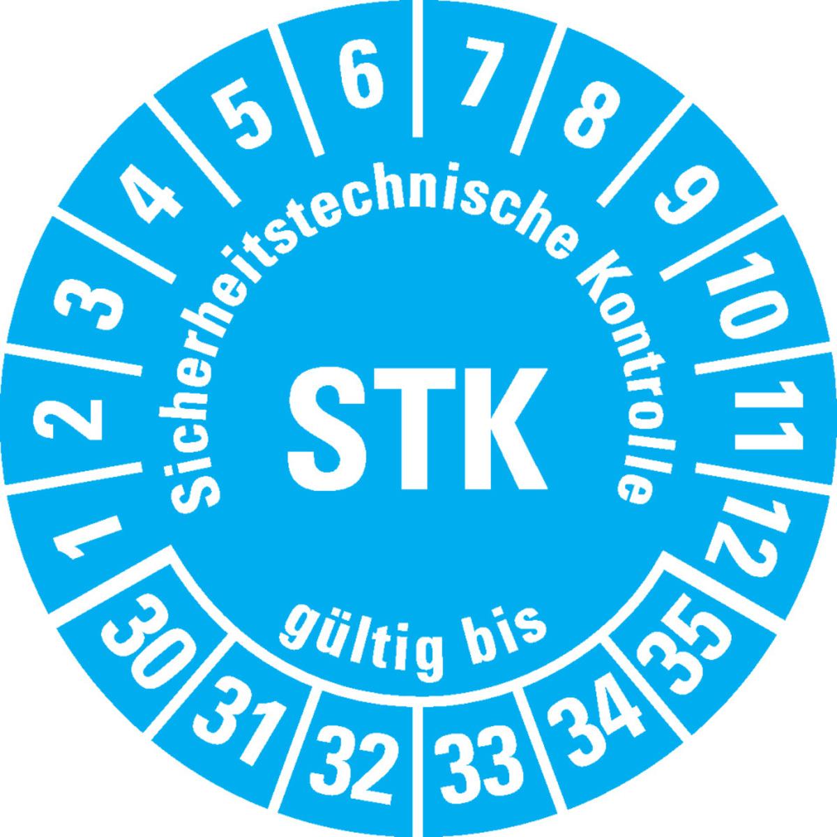 KSIGN Mehrjahresprüfplakette Sicherheitstechnische Kontrolle, STK, gültig bis Ø 30 mm Hochleistungsfolie Bogen