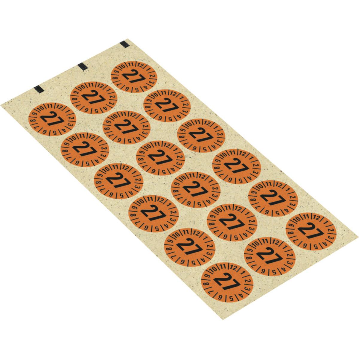 Auswahl: Prüfplakette 27, orange, Primärfaser-Graspapier, selbstkl., Ø 30mm, 18/Bogen