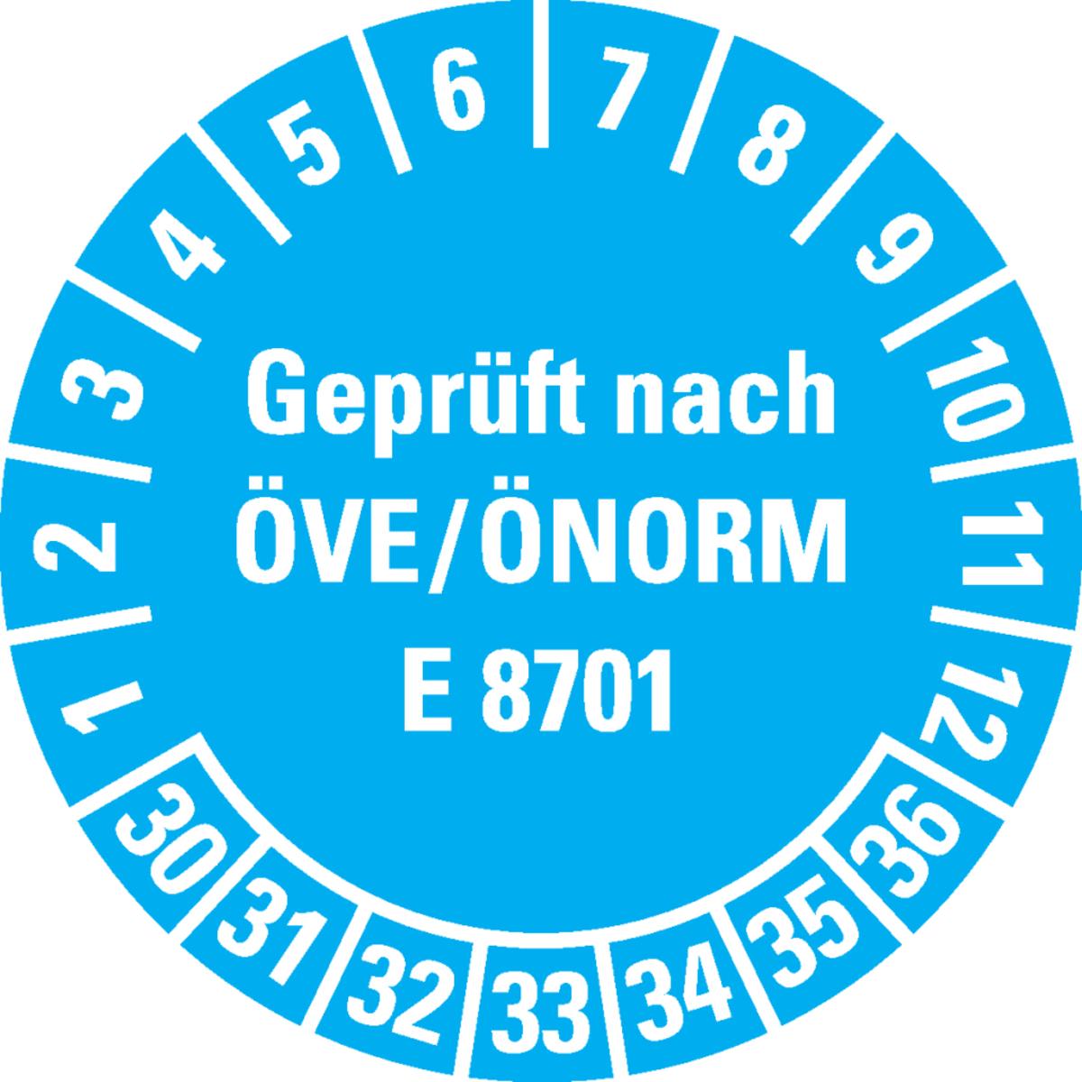 KSIGN Prüfplakette Geprüft nach ÖVE ÖNORM E 8701 Ø 30 mm Dokumentenfolie Bogen