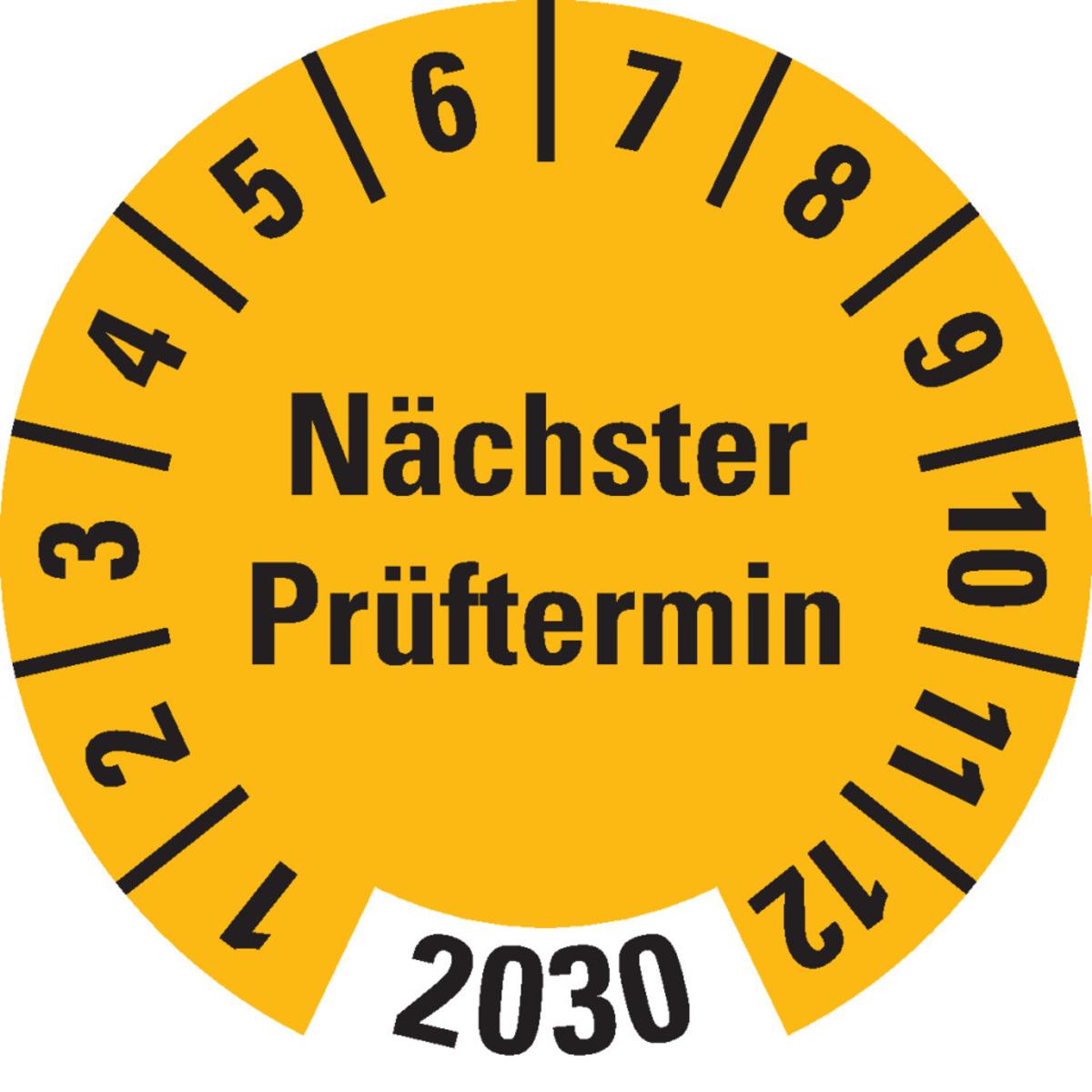 Auswahl: Prüfplakette Nächster Prüftermin 2025, gelb, Dokumentenfolie, Ø 30mm, 18/Bogen