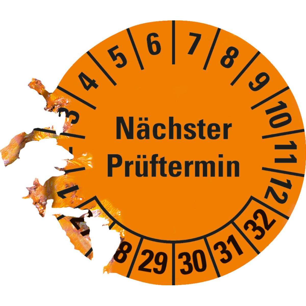 Auswahl: Prüfplakette Nächster Prüftermin, 27-32, orange, Dokufolie, Ø 30mm, 500/Rolle