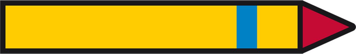 Rohrleitungspfeil zur Kennnzeichnung und Identifikation von Leitungen, welche Kältemittel, Kühlmittel oder Kälteträger außerhalb eines geschlossenen Bausatzes beinhalten.