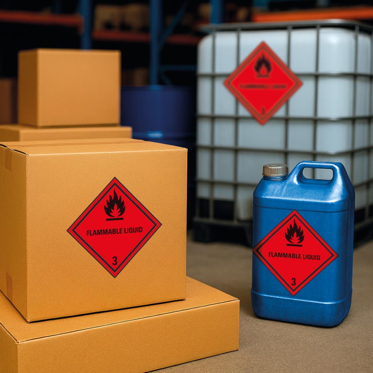 Auswahl: Verpackungskennzeichen Kl. 3 - Flammable Liquid, Folie, selbstklebend, 300x300mm
