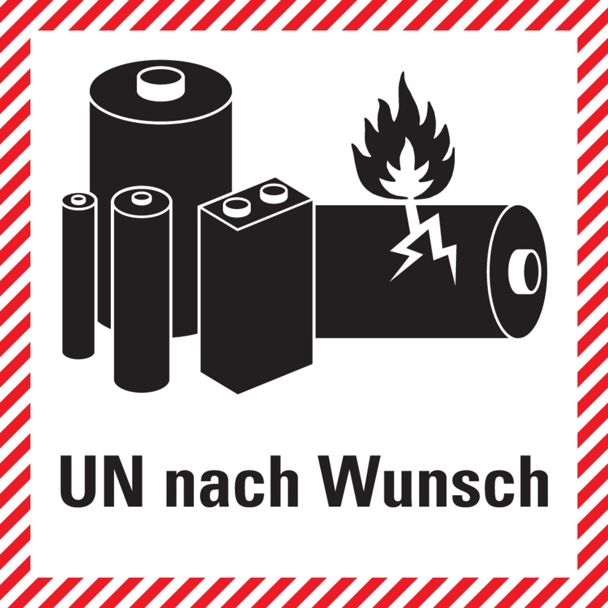 Verpackungskennzeichen für Versandstücke, die Lithiumbatterien enthalten, individualisierbar mit UN-Nummer nach Wunsch