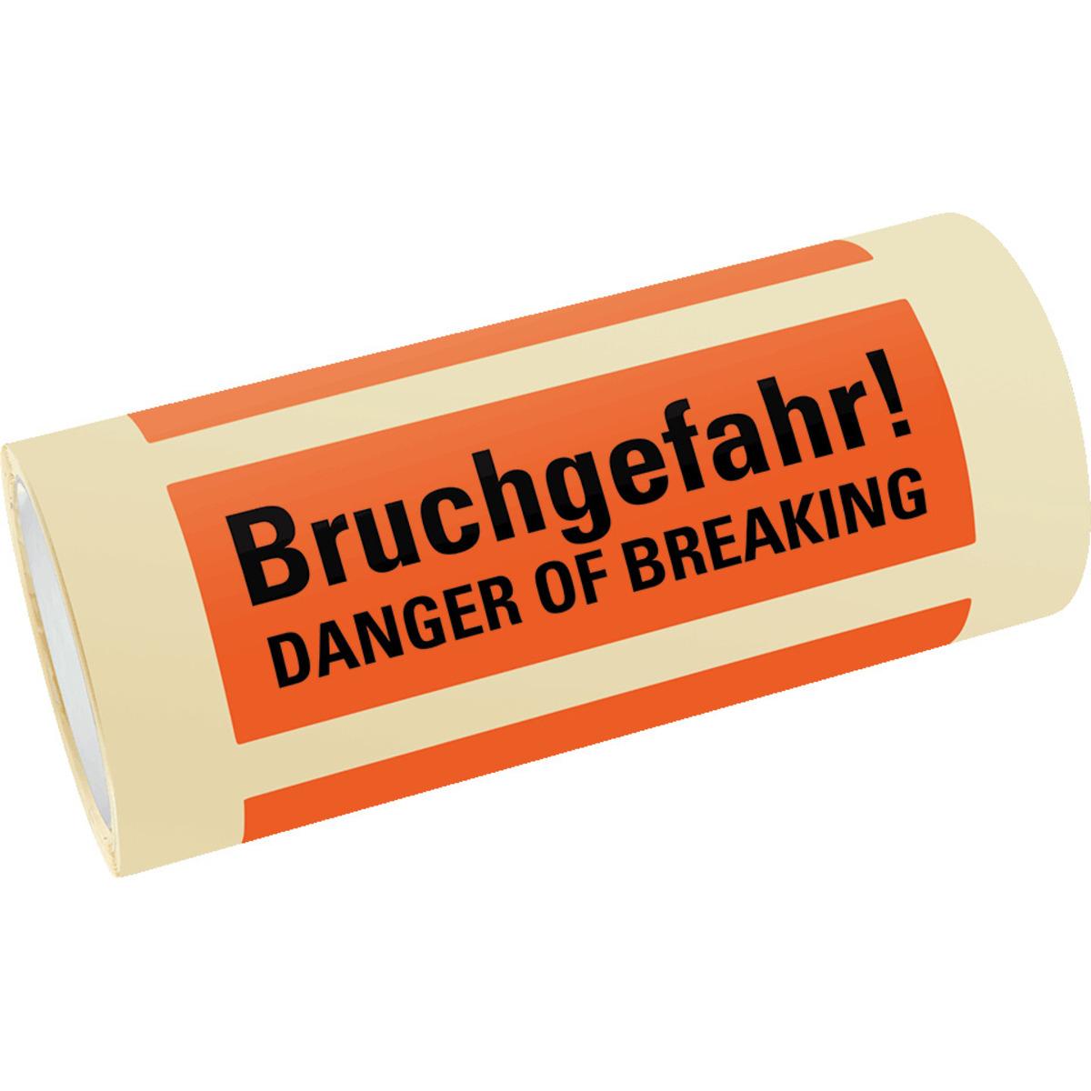 Auswahl: Hinweisetikett Bruchgefahr, 2-sprachig, leuchtrot, Haftpapier, perm.147x50mm, 250/RO