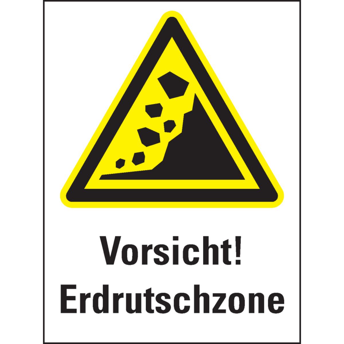 Mit dem Warnschild "Erdrutschzone" machen Sie frühzeitig auf Gefahrenbereiche aufmerksam und tragen dazu bei, Unfälle zu vermeiden und die Sicherheit zu erhöhen.