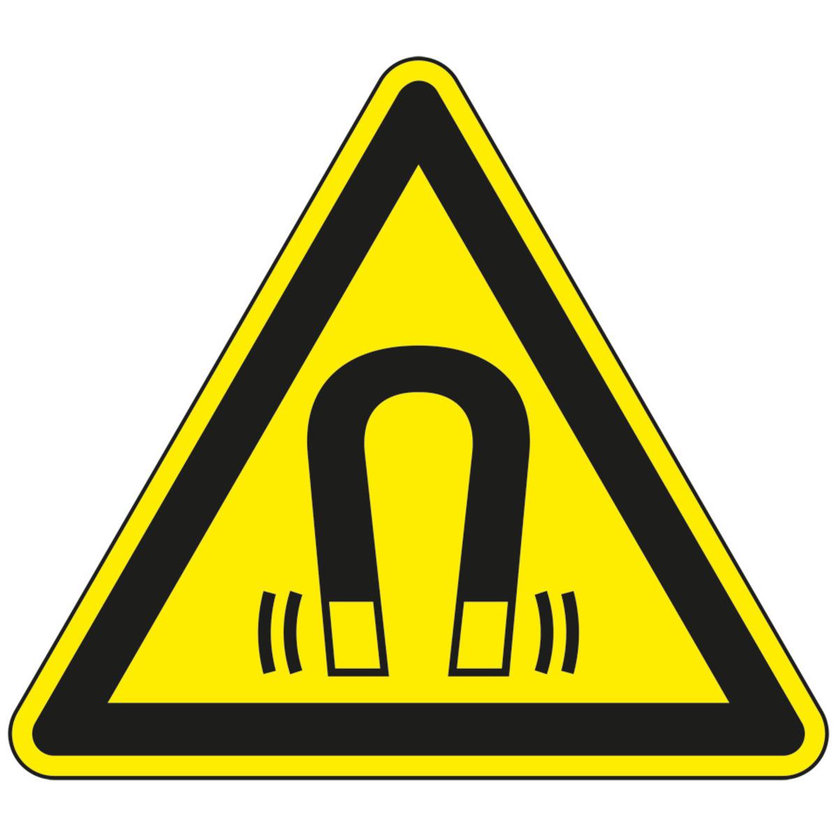 Auswahl: Warnschild Warnung vor magnetischem Feld, ISO/W006, Folie, SL 50mm, 10/Bogen