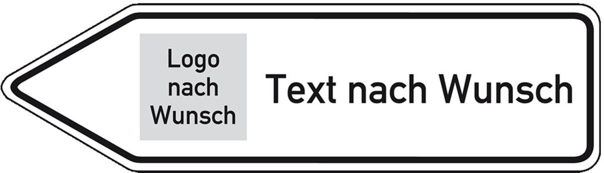 Auswahl: Wegweiser linksweisend, Text nach Wunsch.rechts/Logo nach Wunsch.links, Aluminium Typ0, 1400x350mm