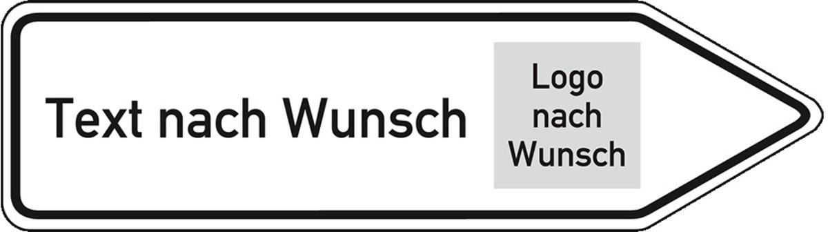 Auswahl: Wegweiser rechtsweisend, Text nach Wunsch.links/Logo nach Wunsch.rechts, Aluminium Typ 0, 1400x350mm