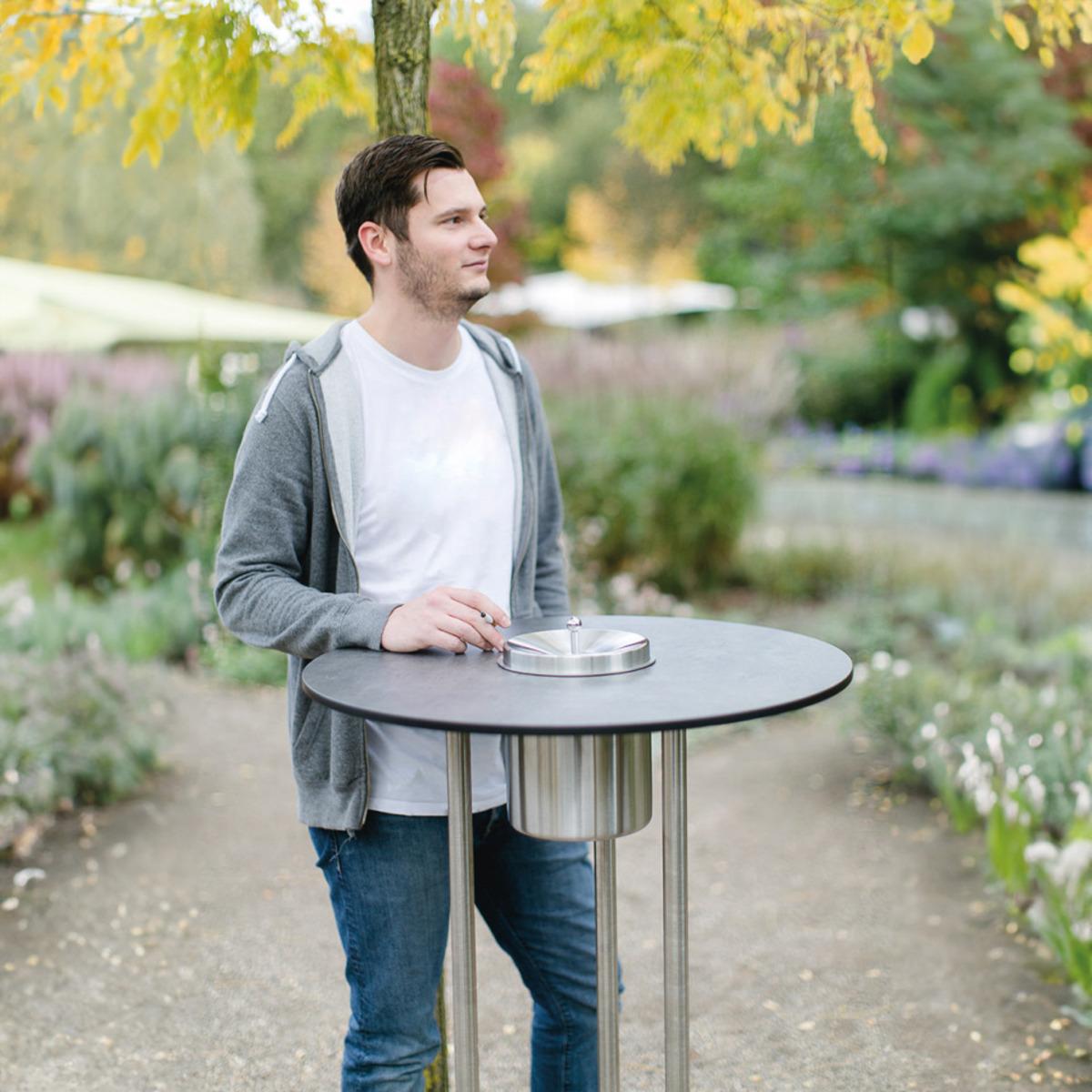 Auswahl: Raucherstehtisch, Edelstahl, pulverbeschichtet, Höhe: 1130mm, Durchmesser: 675mm