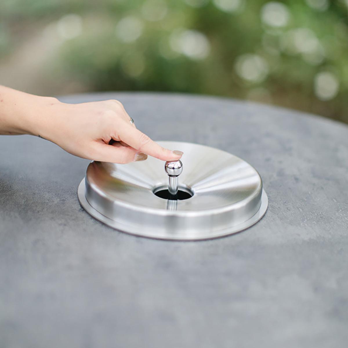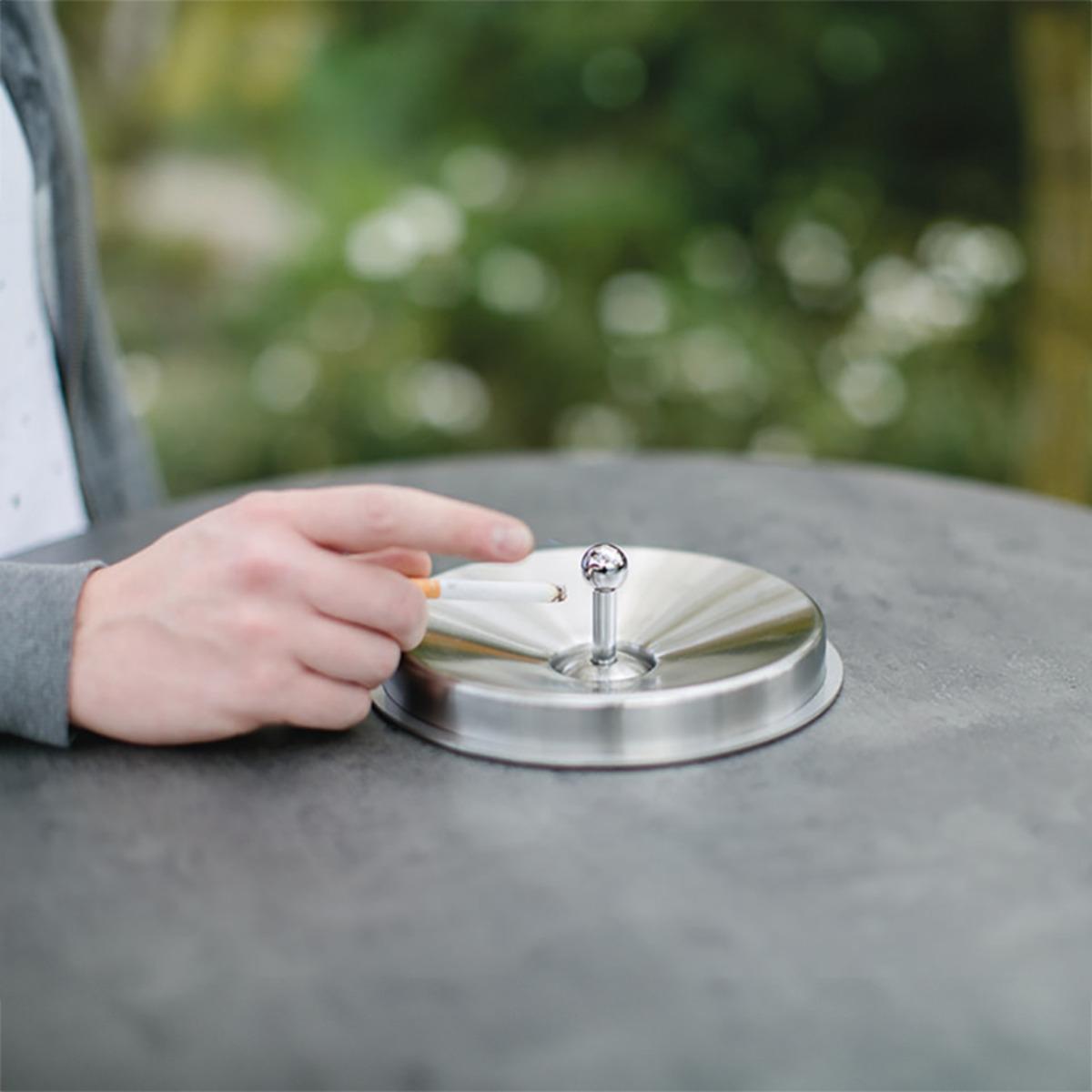 Der geruchshemmende Ascher verfügt über einen Drückerdeckel, welcher ein komfortables Entleeren ermöglicht. Des Weiteren ist ein praktischer Fußtritt integriert, welcher ein bequemes Stehen gewährleistet. Der Ascher ist für den Innen- und Außenbereich geeignet und kann sowohl in geschützten als auch in überdachten Bereichen eingesetzt werden.