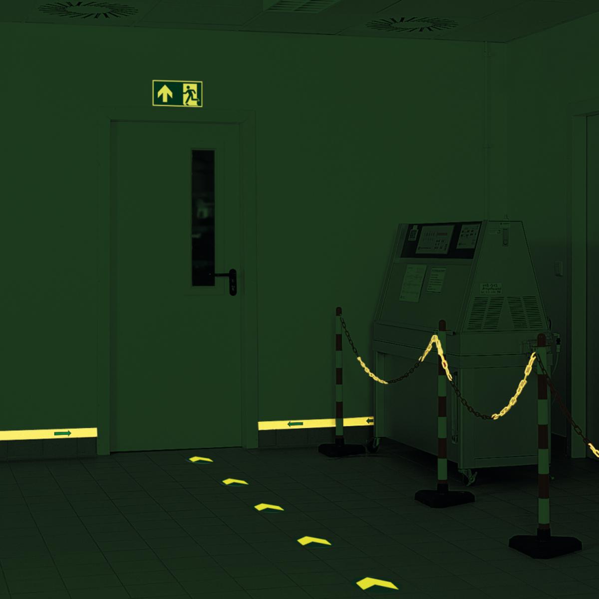 Rutschhemmende, lang nachleuchtende PERMALIGHT® Bodenpunkte.