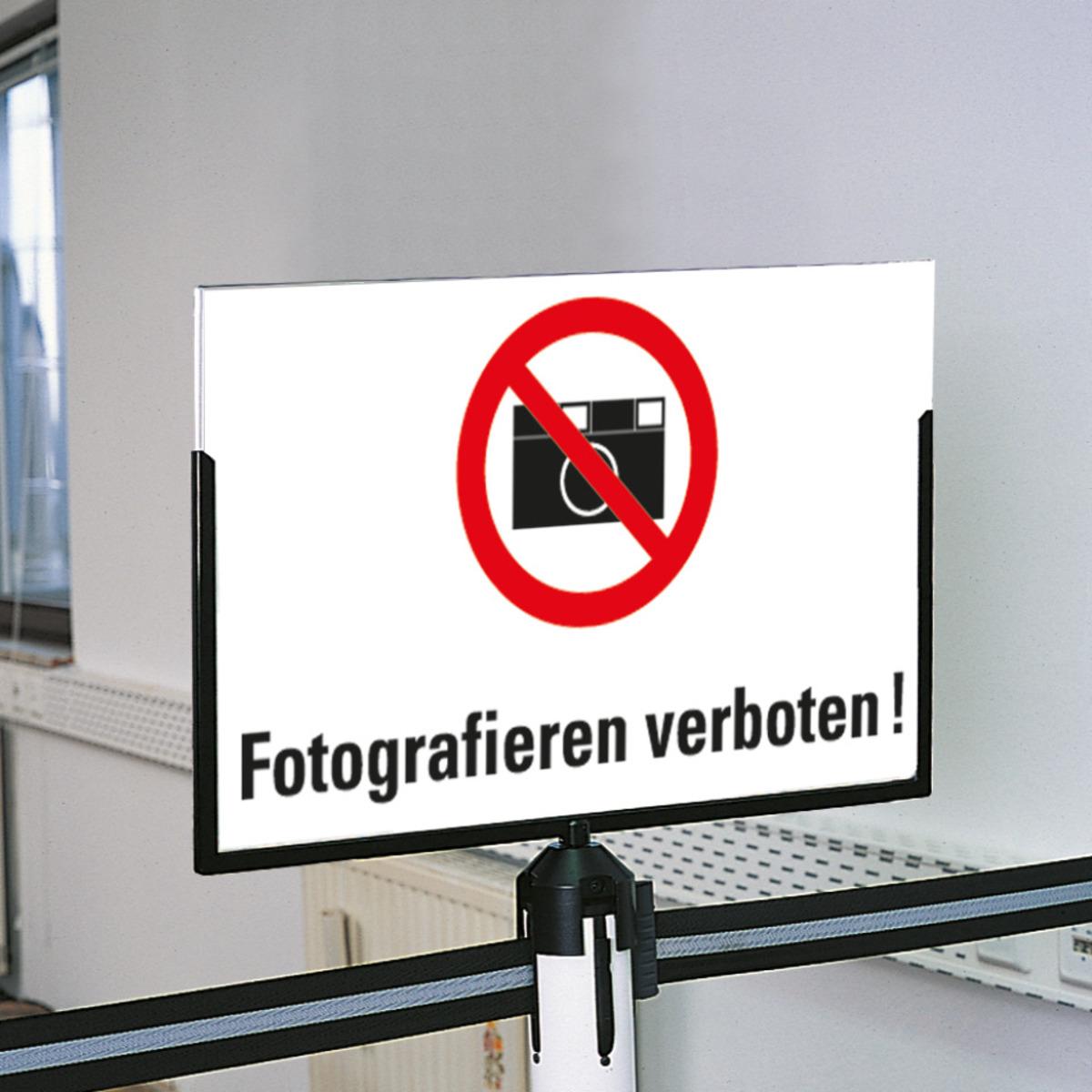 Auswahl: Schilderhalter Indoor, m.Schraub-Klemmverschluss, f.Pfosten mit Ø 65mm, DIN A4 quer