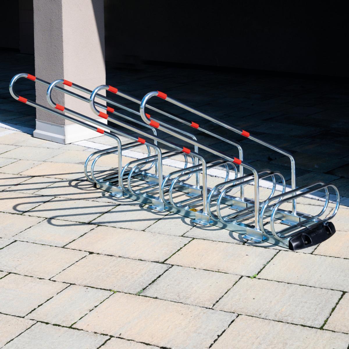 Vorteils-Set Fahrradständer mit mehreren Einstellplätzen für doppelseitige Einstellung, in abgerundeter Form inklusive Befestigungsmaterial.