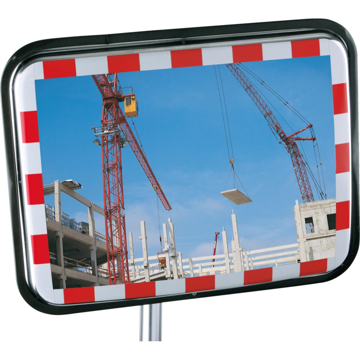 Auswahl: Verkehrsspiegel mit runden Ecken, rot/weiß, Edelstahl, 600x800mm, 14, 7kg