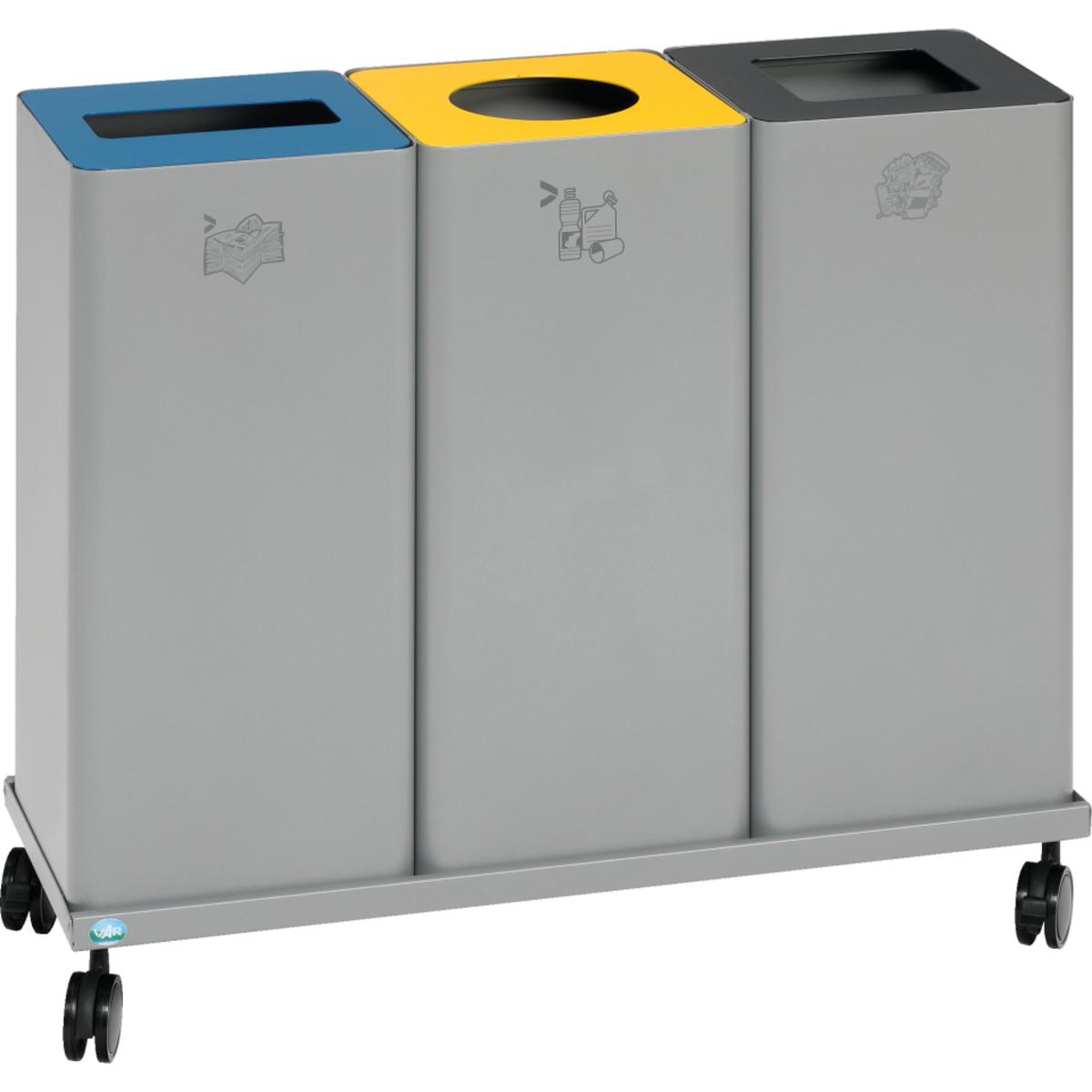 Auswahl: Wertstoffsammelgerät WSG Quadro 79, 3-fach Kombi, 70 Liter/Behälter, Transportwagen