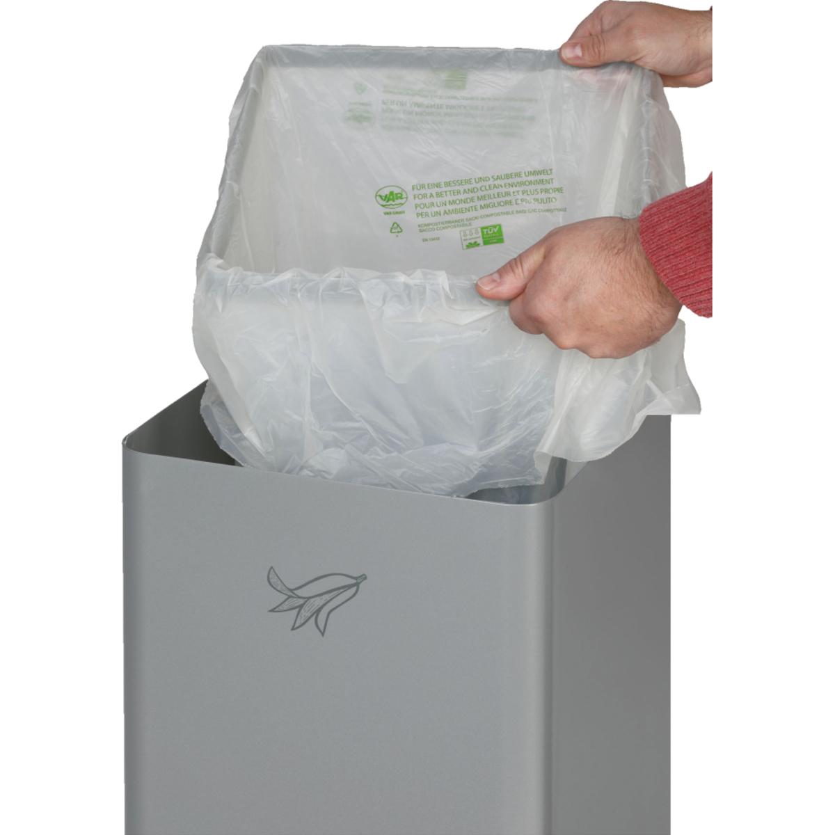 Das Wertstoffsammelgerät besteht aus robusten, verzinkten Stahlblechen und bietet eine zuverlässige Lösung für die getrennte Erfassung von Abfällen. Jeder Behälter ist mit einem Klemmring zum sicheren Einhängen von Kunststoffsäcken ausgestattet. Die Entleerung erfolgt bequem über den abnehmbaren Aufsatz.