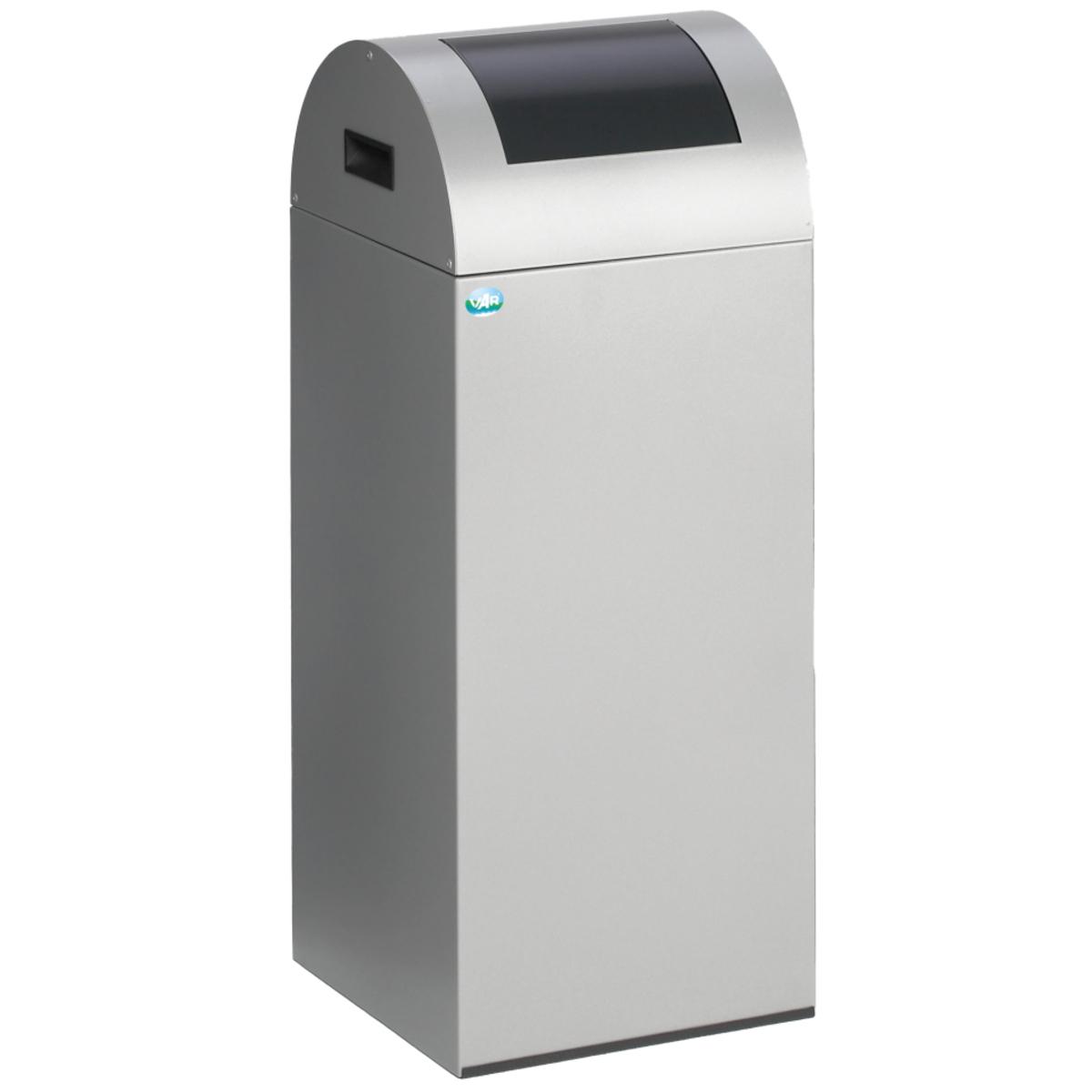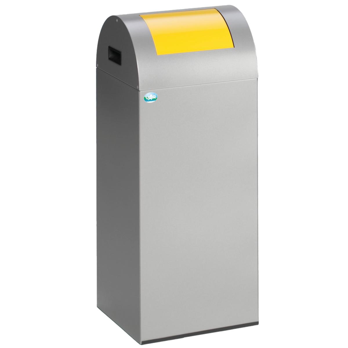 Das Wertstoffsammelgerät überzeugt durch seine selbstlöschende Konstruktion und farbige Einwurfklappen, die eine klare Trennung der Abfälle vorgeben. Das Kopfteil verfügt über eine selbstschließende Klappe und praktische Griffmulden, wodurch die Handhabung besonders komfortabel ist. Es lässt sich leicht abnehmen und ermöglicht dank Klemmring eine sichere Befestigung des Abfallsacks.