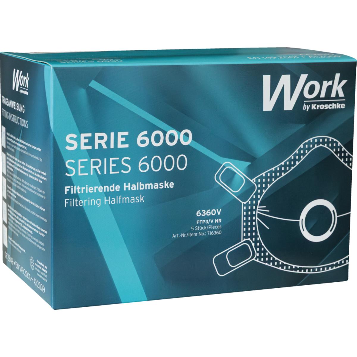 Auswahl: Work Serie 6000 filtrierende Halb-/Feinstaubmaske 6360V, Kat.III, FFP3, Ventil, 5/VE